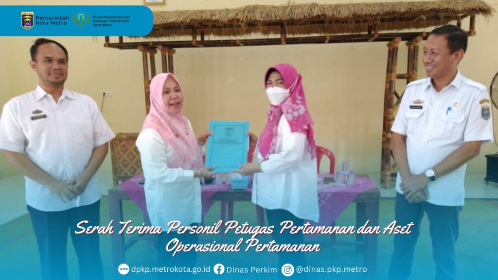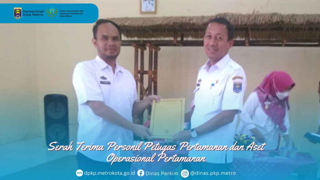 Serah Terima Personil Petugas dan Aset Operasional Pertamanan ini sesuai dengan Peraturan Walikota Metro Nomor 30 Tahun 2022 tentang Perubahan Atas Peraturan Walikota Metro Nomor 43 Tahun 2021 Tentang Kedudukan, Susunan Organisasi, Tugas dan Fungsi Serta Tata Kerja Perangkat Daerah Kota Metro. Serah Terima ini bertujuan untuk meningkatkan kinerja Organisasi Perangkat Daerah di Lingkungan Pemerintah Kota Metro dalam melaksanakan tugas dan fungsi.